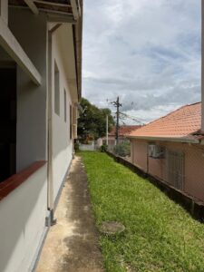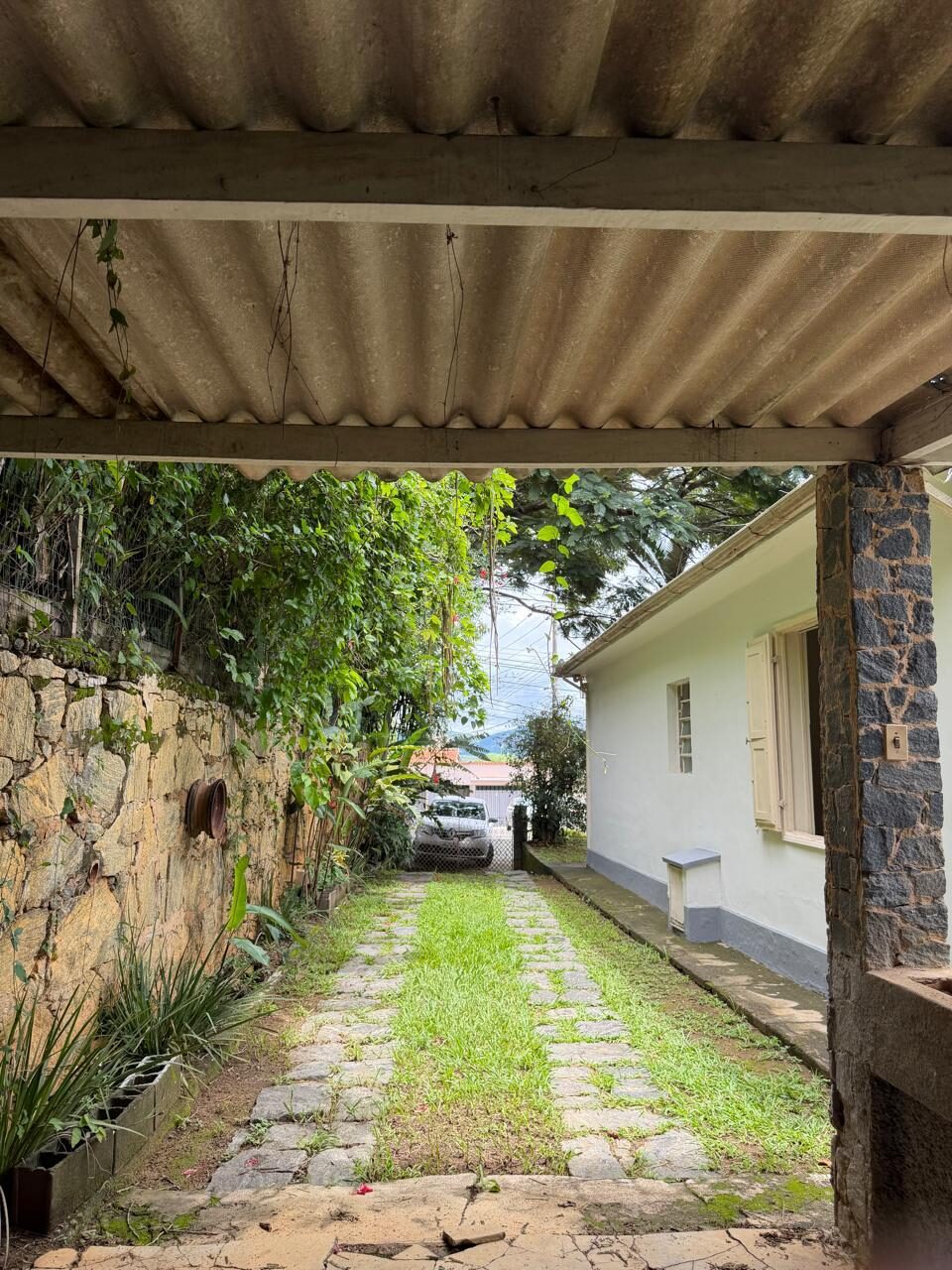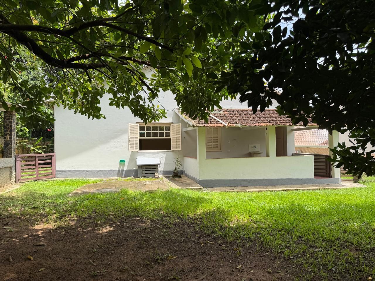 O imóvel conta com uma charmosa varanda, perfeita para relaxar, além de um quintal amplo com árvores frutíferas, trazendo contato com a natureza e um clima tranquilo ao dia a dia.
